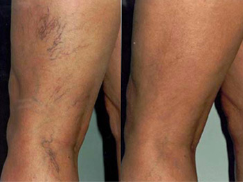 Used for spider veins and smaller varicose veins, this is a highly-effective treatment that involves injecting a chemical into the damaged vein to seal it shut then turn to scar tissue and fade within a few weeks. Several treatments may be needed to achieve the desired results. This is an in-office, no-anesthesia procedure that has no down time – you can resume normal activity immediately afterwards.